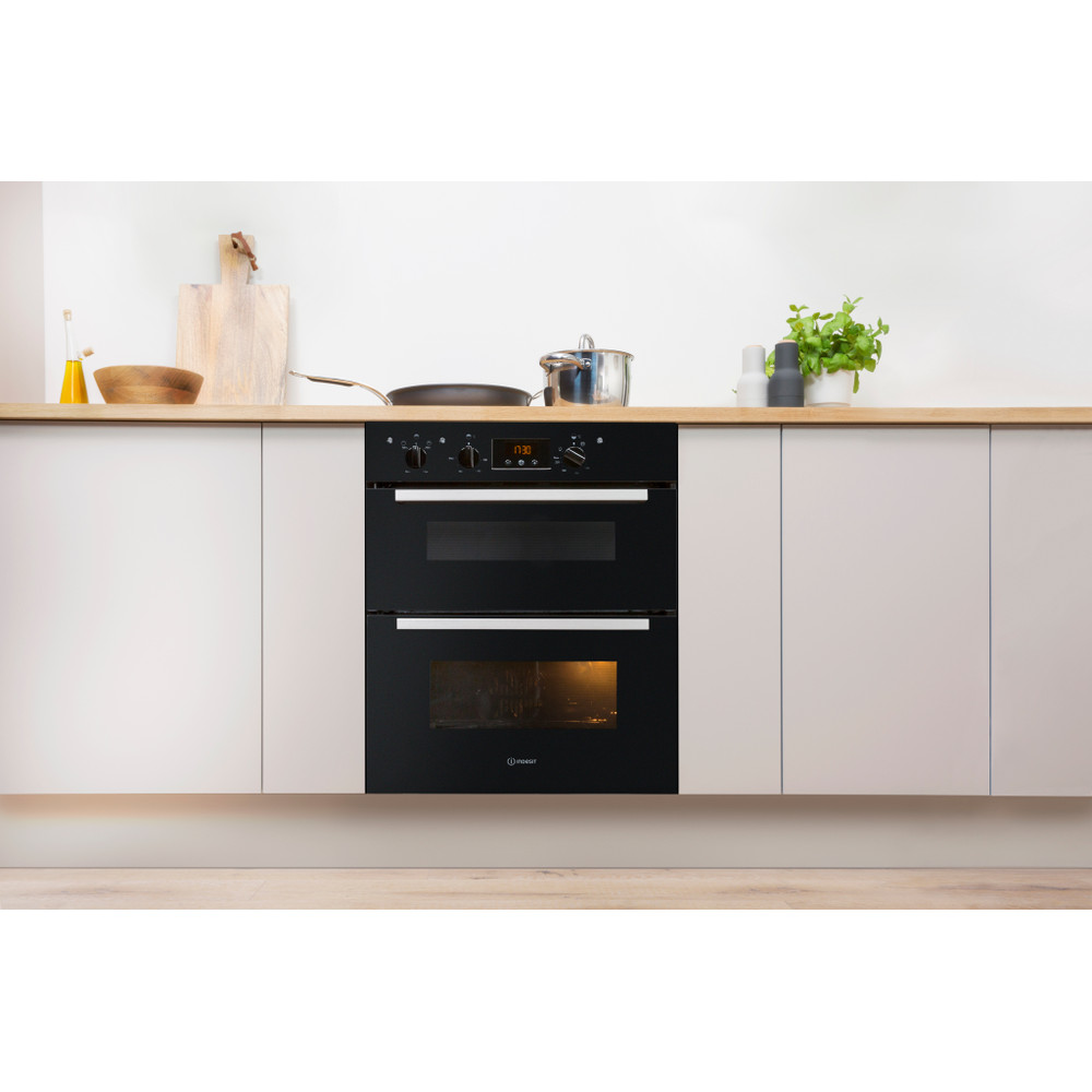 Perfect for big family meals, the Indesit Aria IDU 6340 BL Double Oven in black combines versatile cooking space with a co-ordinated design to suit every style. With 59L of cooking capacity in the main oven, there’s plenty of space for making all the family favourites. Featuring fan assistance, enjoy a more even approach to cooking with less chance of cold spots and heat pockets. Complementing this, 37L of space in the top oven, gives you plenty of room for side dishes, an area to keep meals warm, and – with an integrated twin variable grill – the perfect place to brown and crisp tops. For ease of use, we’ve also included a grill pan and rack, giving you all the kit you need for great results. Featuring enamel liners to provide an easy clean surface for food spits and fat, plus an in-built Digital Timer to make sure you always cook to perfection - the Indesit Aria IDU 6340 BL Double Oven combines style with the perfect kit to make tasty meals time and time again.